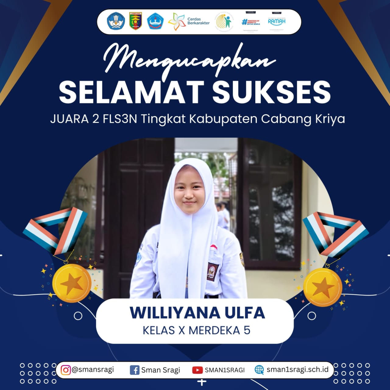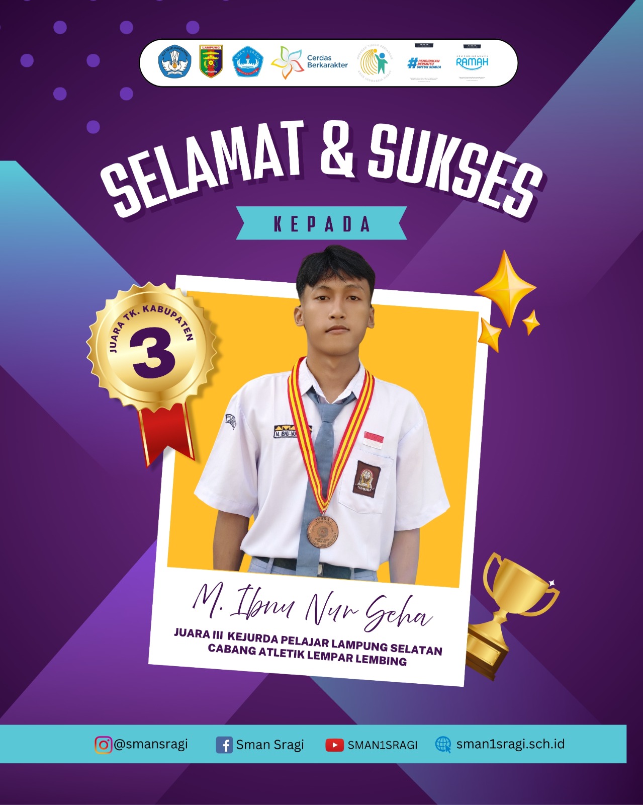 Salah satu siswa berprestasi dari SMA Negeri 1 Sragi, Hilal Arizkia Ramadhani yang saat ini duduk di bangku kelas X Merdeka 3, berhasil meraih Juara 3 dalam Lomba Komik Digital yang diselenggarakan pada tanggal 09 September s.d 07 November 2024 secara daring dalam rangka Gerakan Literasi Sekolah (GLS) tingkat SMA se-Kabupaten Lampung Selatan.Kompetisi ini merupakan bagian dari upaya meningkatkan budaya literasi di kalangan pelajar, dengan mendorong kreativitas dan ekspresi melalui media digital. Hilal menunjukkan bakat luar biasa dalam menggabungkan cerita yang inspiratif dengan ilustrasi yang menarik, sehingga mampu bersaing dan meraih prestasi di tingkat kabupaten.